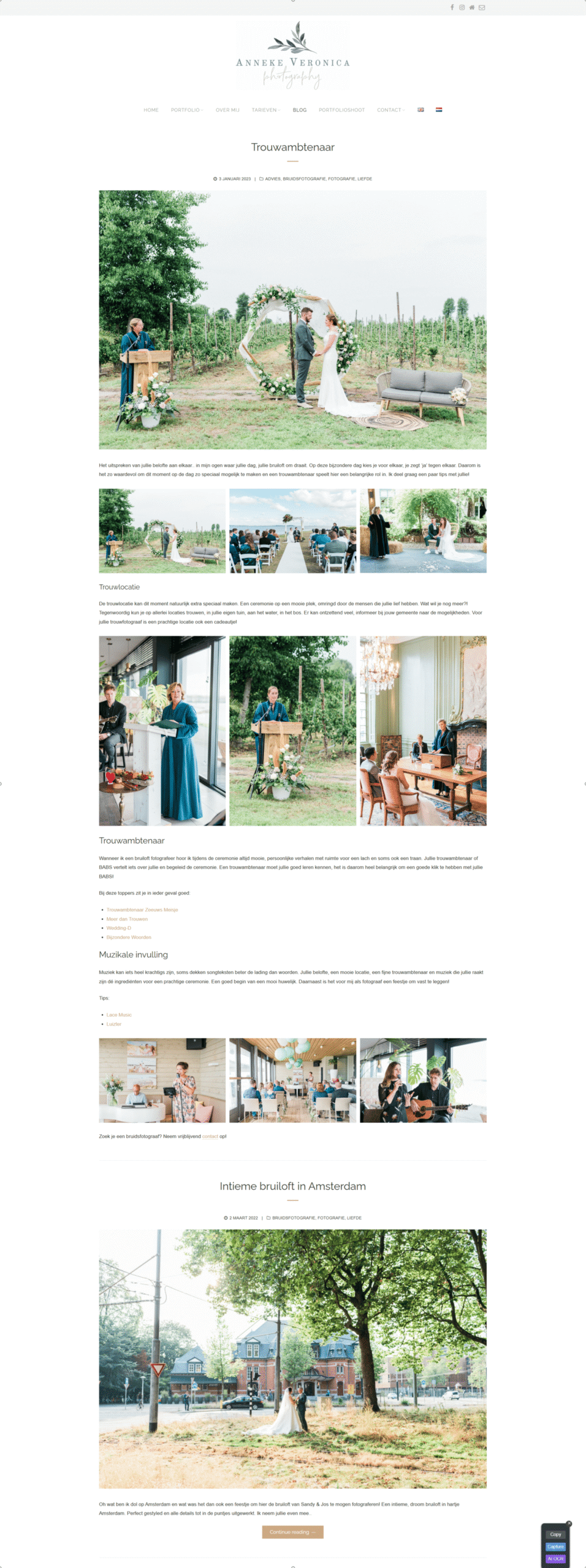 This website was a joy. Anneke is such a talented photographer, all the images she supplied for the site were top-notch. This piece of work was an installation service with some customisation and configuring to get it just right. This site needed PolyLang set up in order to deliver the pages in multiple languages. A private booking form was also installed with custom styling and HTML coded email replies for that professional touch. Anneke is tech savvy enough to add her own content whilst I was there cheer-leading her on and providing any support and advise she needed. The theme chosen was the “Simple & Elegant” theme from WIThemes who has provided super fast support for the occasional issue (even after our included support period had run out).